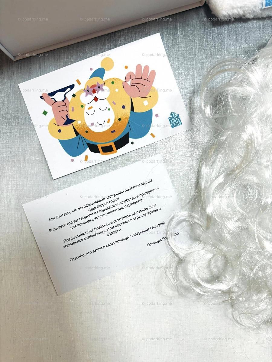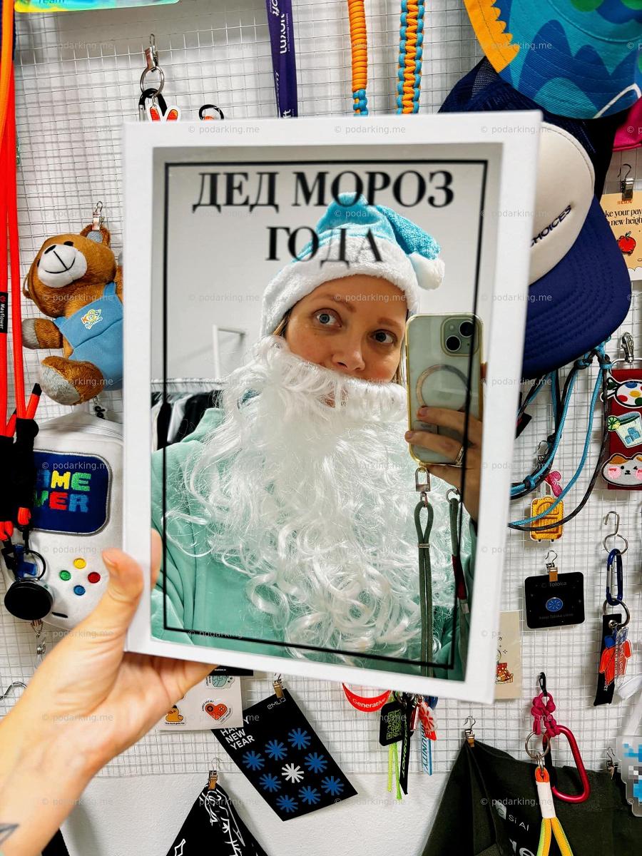 Коробка-зеркало и борода и шапка Деда Мороза, чтобы нести собой праздник.